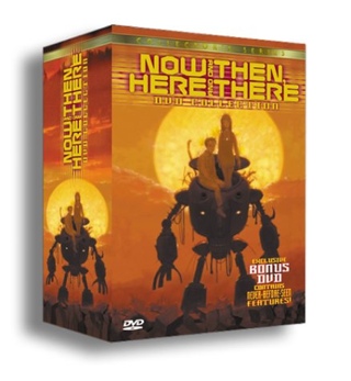 Shuzo "Shu" Matsutani, a rambunctious adolescent kendo student, encounters a mysterious girl named Lala-Ru in an abandoned factory near his home. When she's captured by hostile mecha, Shu is taken with her to another world, to the unfortunately named fortress-ship Hellywood, ruled by the psychotic King Hamdo. The apparently ancient Lala-Ru can produce vast quantities of water, which Hamdo desires. Shu is imprisoned, beaten, and tortured before being inducted into Hamdo's army of child-soldiers. He doggedly insists that he must protect Lala-Ru, despite her great powers. They escape Hellywood, wander through the desert, and reach a pueblo-like village where they defeat Hamdo. The rambling storyline recalls both "El Hazard" and "Escaflowne". What sets "Now and Then" apart is the gritty realism of the violence: unlike other anime characters, Shu seems to feel real pain when Hamdo's thugs beat him. Although the rape of the Earth girl Sara is suggested rather than depicted, she has to decide whether to keep or abort the child. These depictions of the brutality of war give "Now and Then" a grim power many better-written and better-animated series lack. The most interesting segment on the "bonus disc" juxtaposes the animated version of the final episode with the storyboards. "From Then to Now" includes clips from the audition tapes of the actors playing Hamdo (Jack Taylor) and Shu (a surprisingly burly Ed Paul) along with interviews and standard behind-the-scenes footage of the recording sessions. Rated 16 Up for considerable violence, minor profanity, adult themes. "--Charles Solomon"